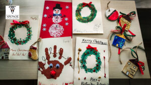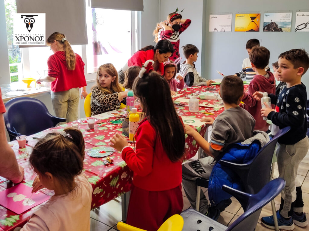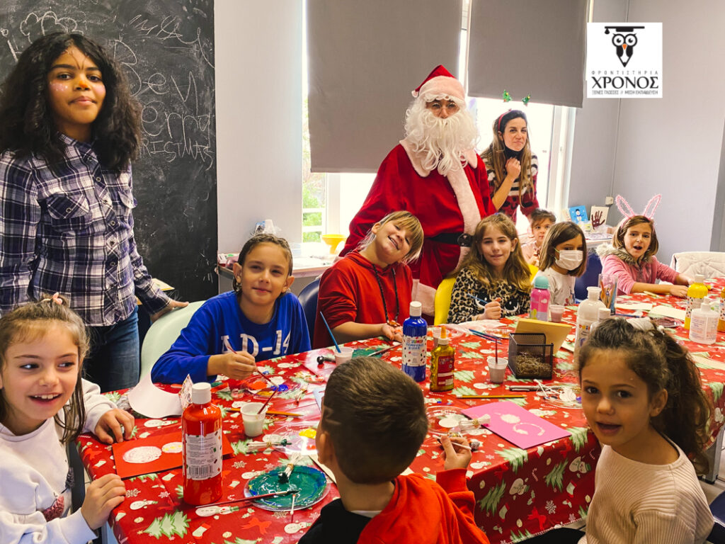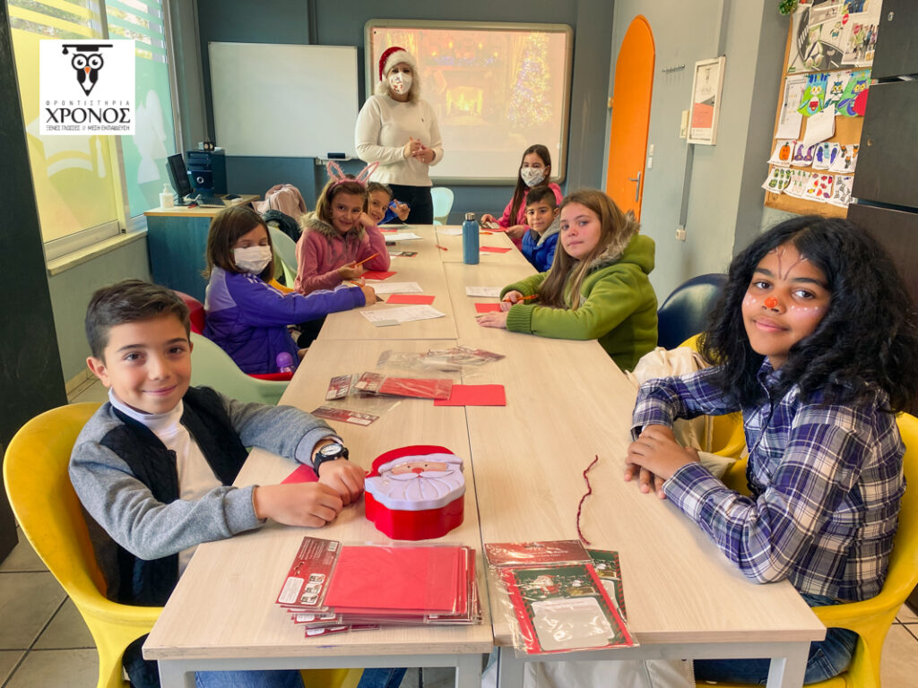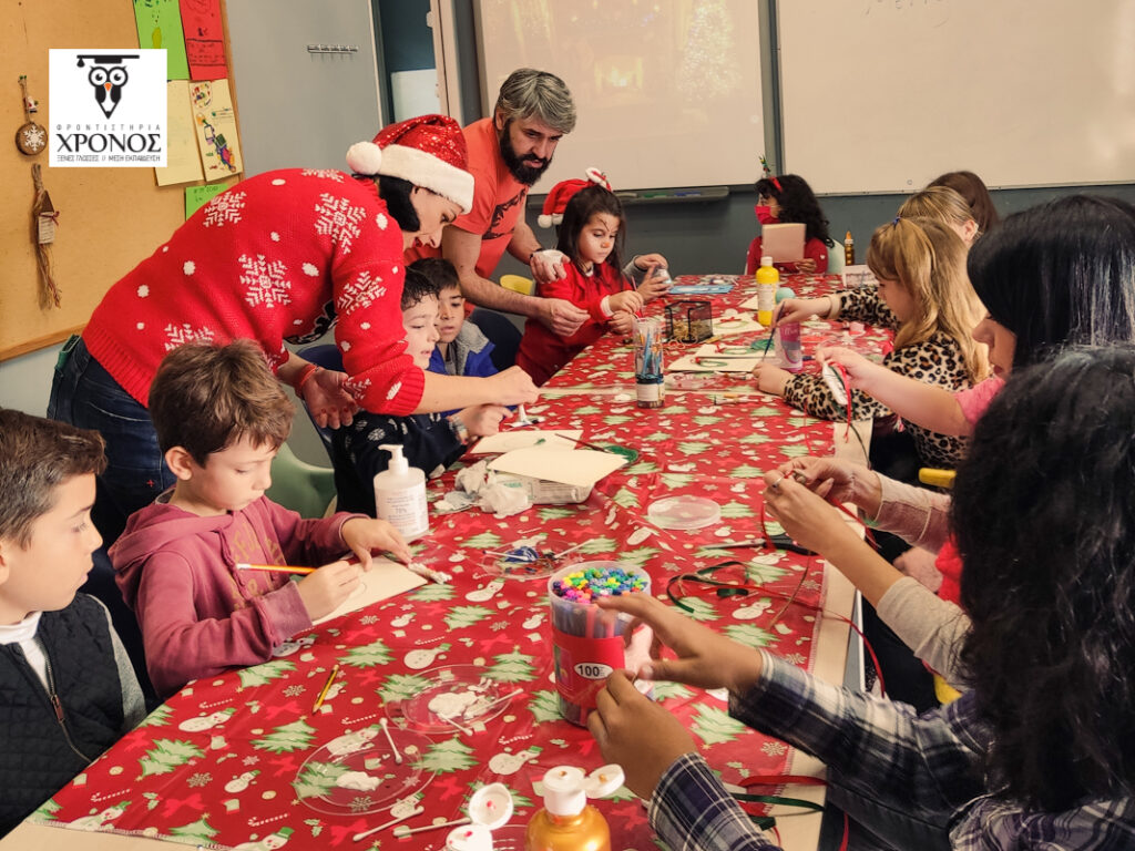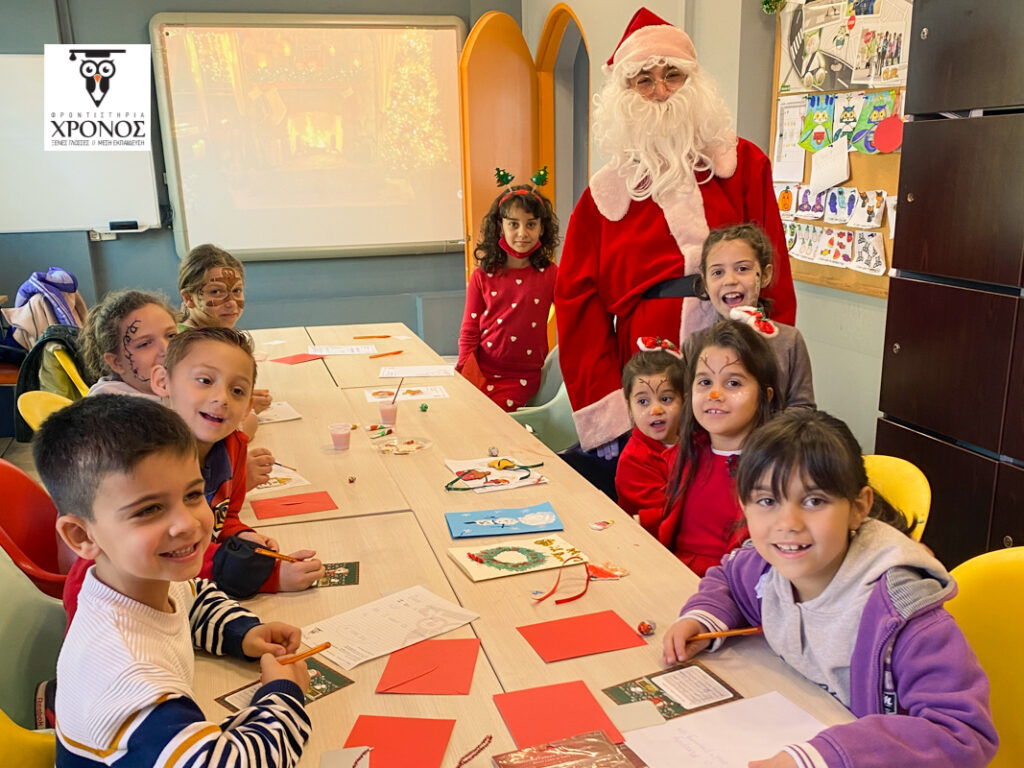 Από νωρίς το πρωί στο Φροντιστήριο η ομάδα των Καθηγητών μας ετοίμασαν 2 αίθουσες δραστηριοτήτων όπου τα παιδιά έφτιαξαν Χριστουγεννιάτικες κάρτες, χρωμάτισαν πήλινα στολίδια για τα δέντρα τους, έφτιαξαν γούρια για το νέο έτος, αλλά και έγραψαν το μυστικό τους γράμμα στον Άγιο Βασίλη, στα Αγγλικά!