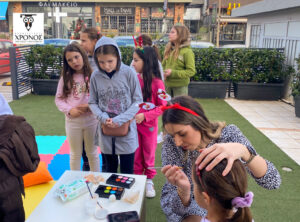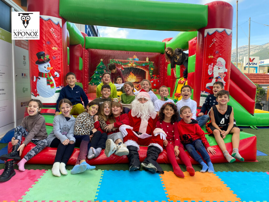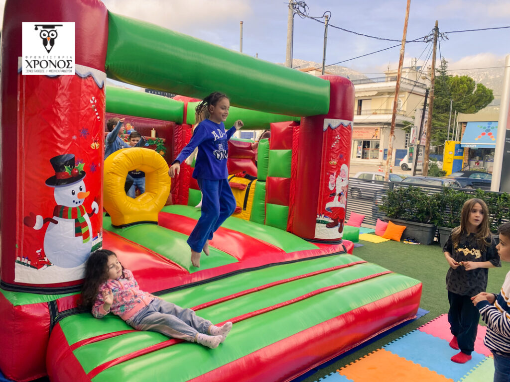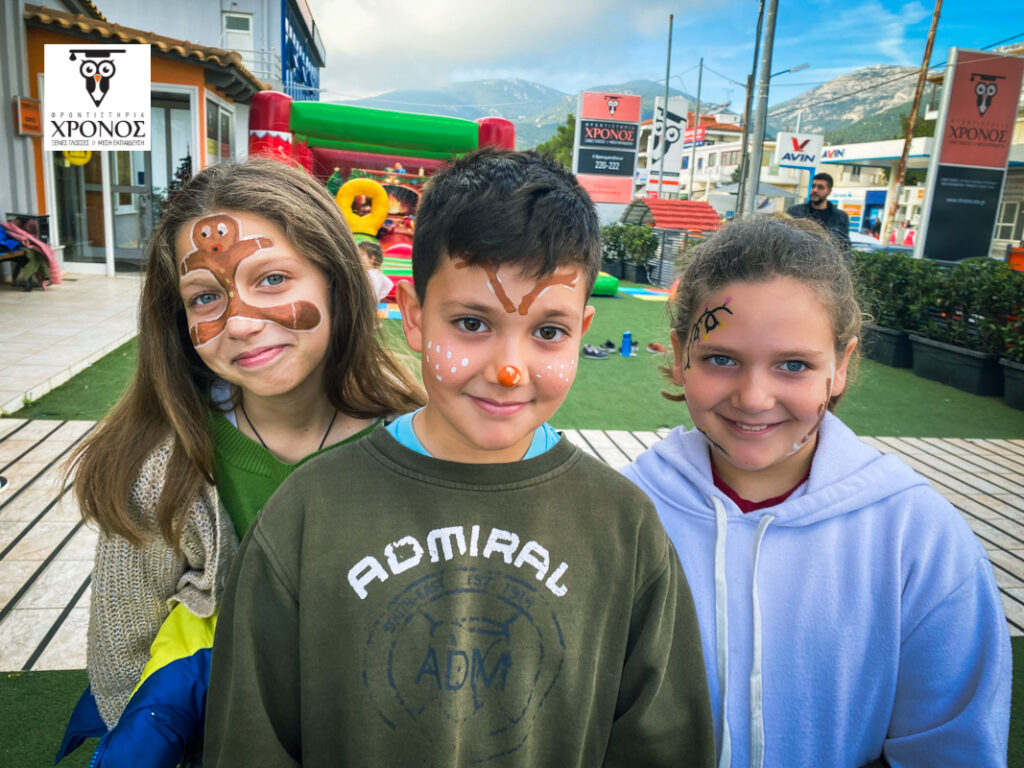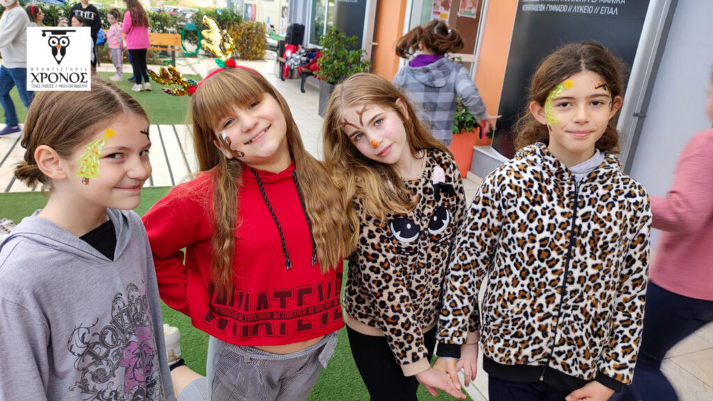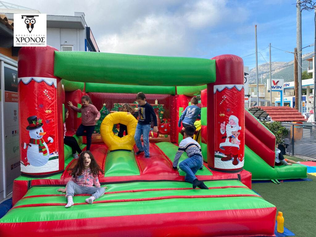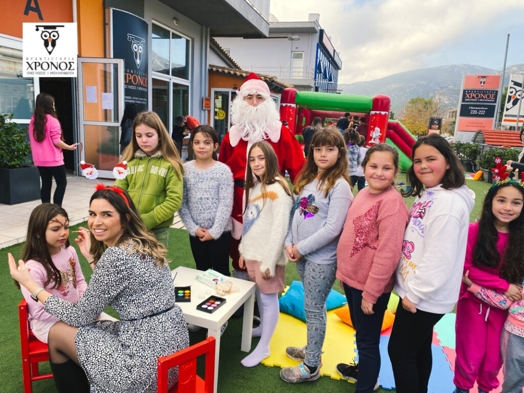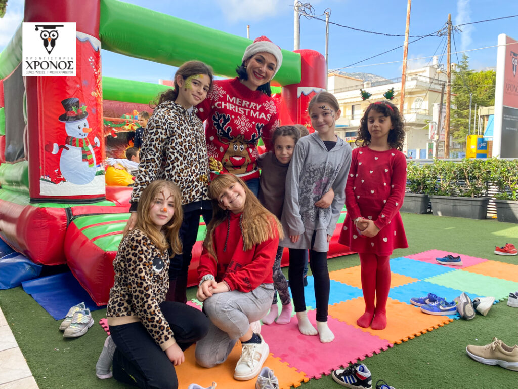 Στην αυλή του Φροντιστηρίου στήθηκε ένα τεράστιο φουσκωτό κάστρο, αλλά και μια γωνιά όπου όσοι μαθητές ήθελαν, μπορούσαν να κάνουν face painting! Λίγη ώρα αργότερα, χαρούμενα προσωπάκια ζωγραφισμένα με χιονάνθρωπους και γιρλάντες, μικρά ταρανδάκια και μπισκοτάκια κατέκλυσαν την αυλή μας!
