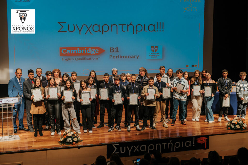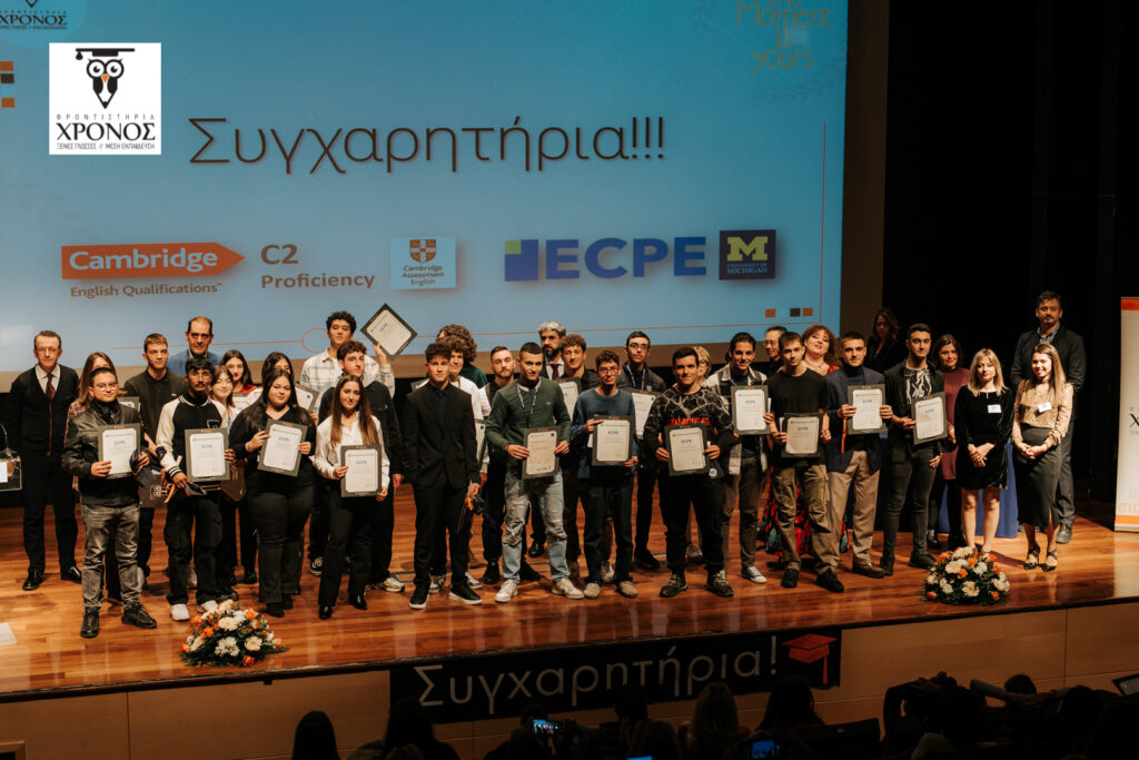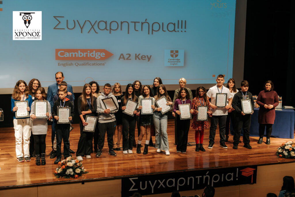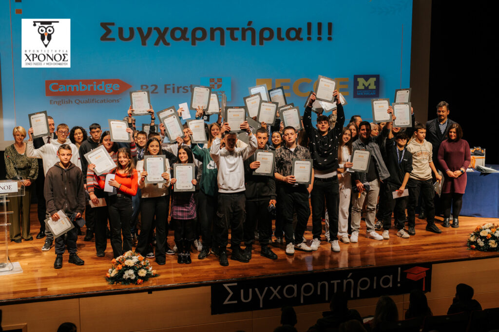 Μια από τις στιγμές που περιμένουμε κάθε χρόνο με χαρά και ανυπομονησία στα Φροντιστήρια ΧΡΟΝΟΣ, είναι η ετήσια Εκδήλωση Απονομής Πτυχίων, κατά την οποία βραβεύουμε όλους τους μαθητές που απέκτησαν πιστοποιητικά γλωσσομάθειας Αγγλικών, Γαλλικών και Γερμανικών, το προηγούμενο σχολικό έτος.